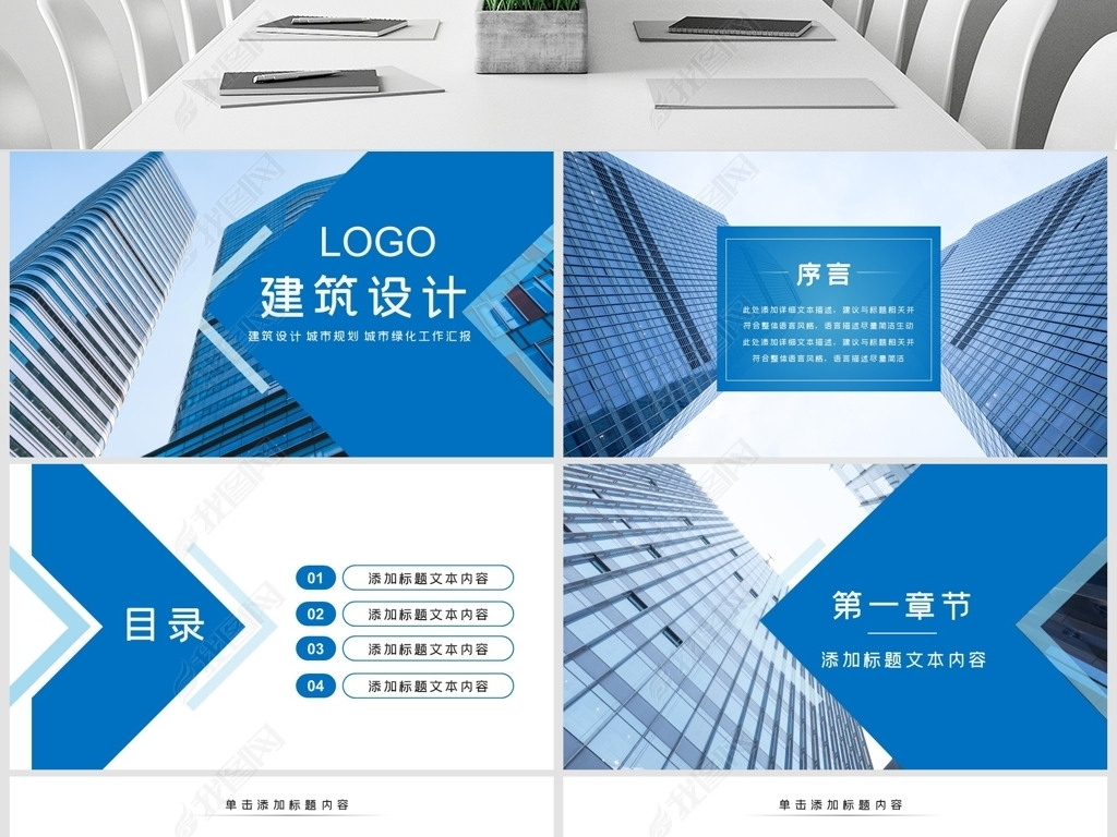 蓝色大气建筑学建筑设计公司建筑PPT模板