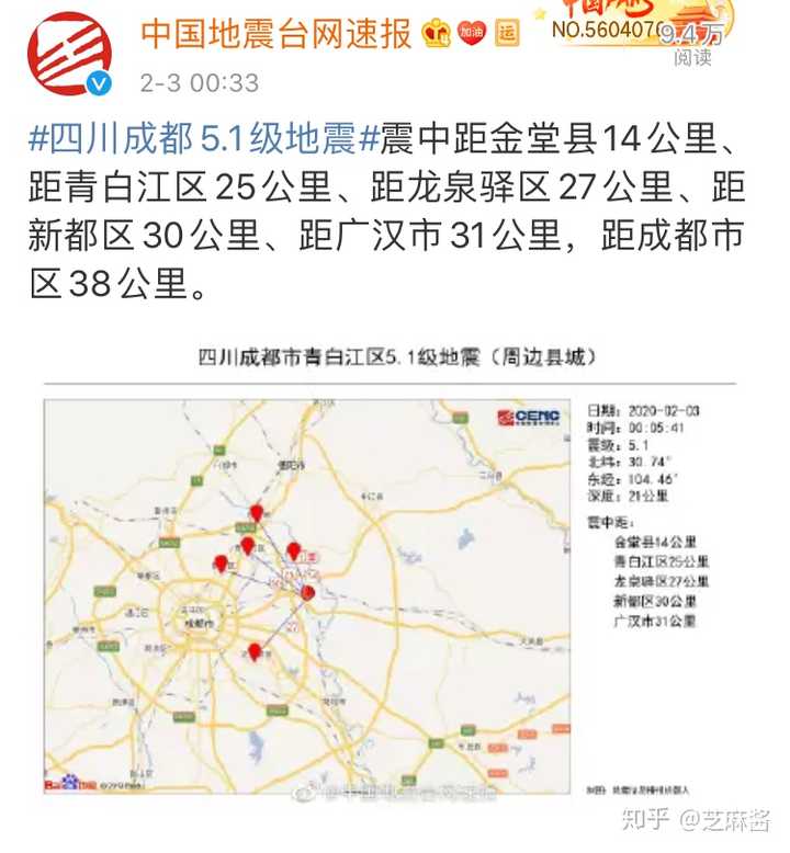 成都人民太欢乐了,因金堂4.7级地震出来的
