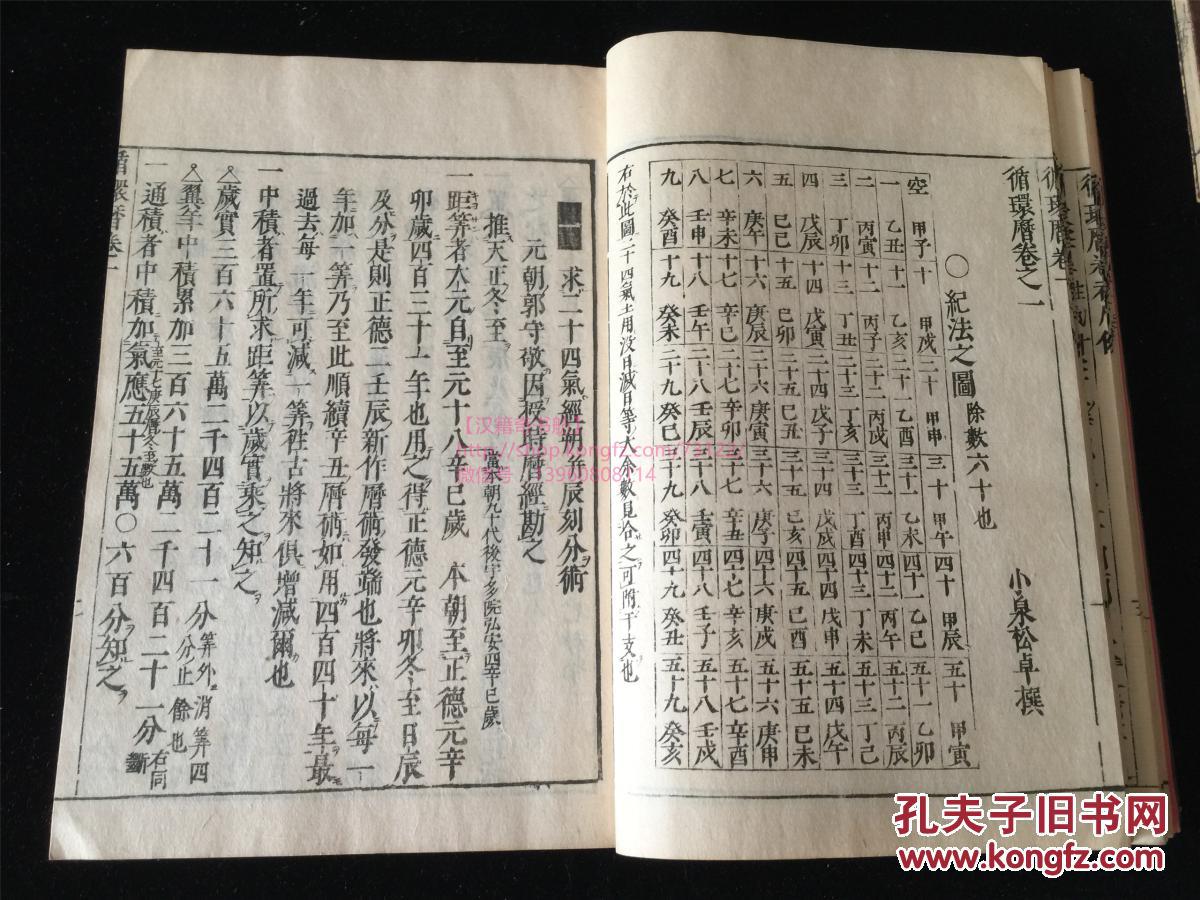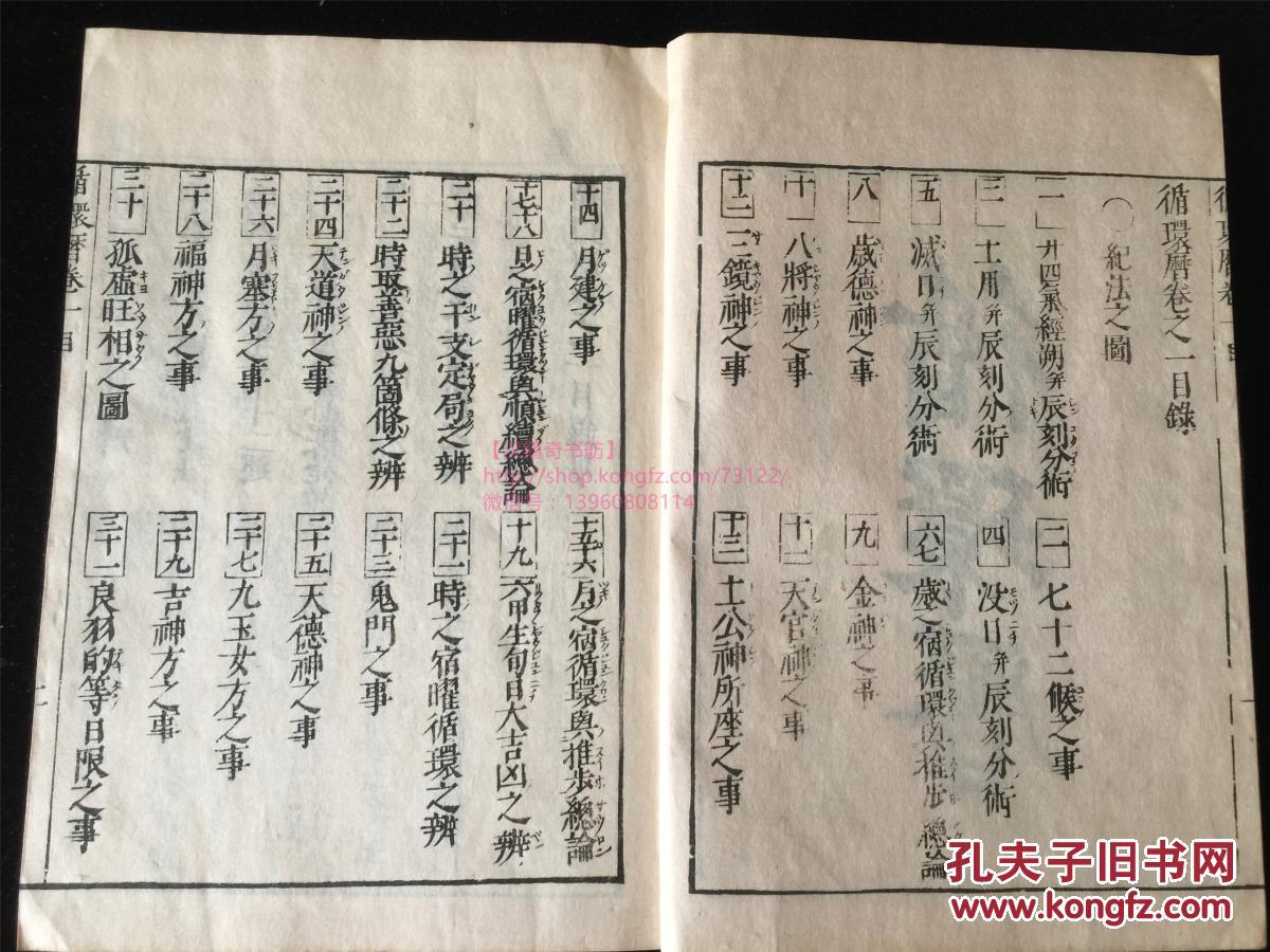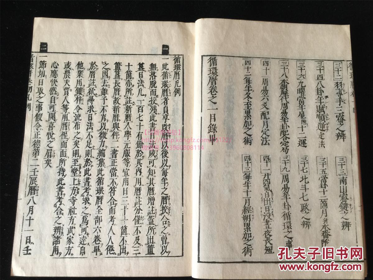 文政六年(1823年)和刻:《循环历》5册全。小泉松卓撰,日本风水、天文历法、易占之学。桃红牌记。有木刻版图,引用中国古籍吕氏春秋、五行数、本草纲目、史记评林、大明历、山海经、尚书历、风俗通等数十种。