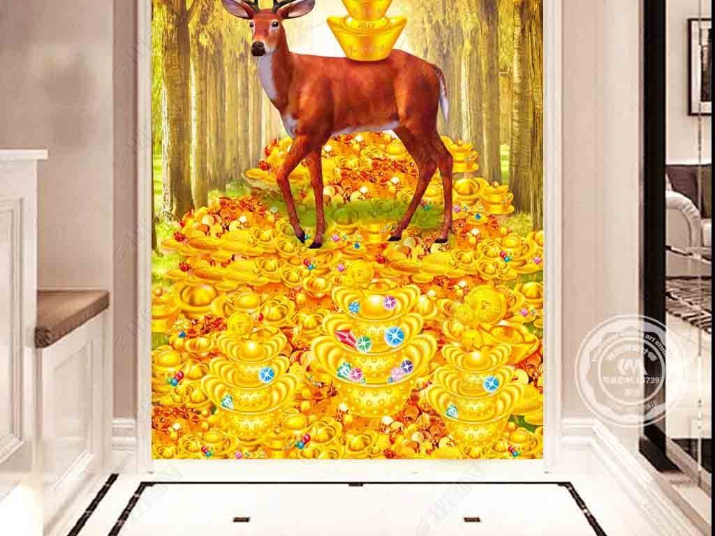 发财鹿黄金大道玄关背景装饰画