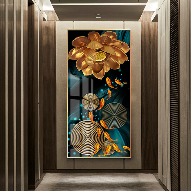 进门玄关装饰画竖版招财风水3d立体浮雕壁画现代轻奢走廊过道挂画