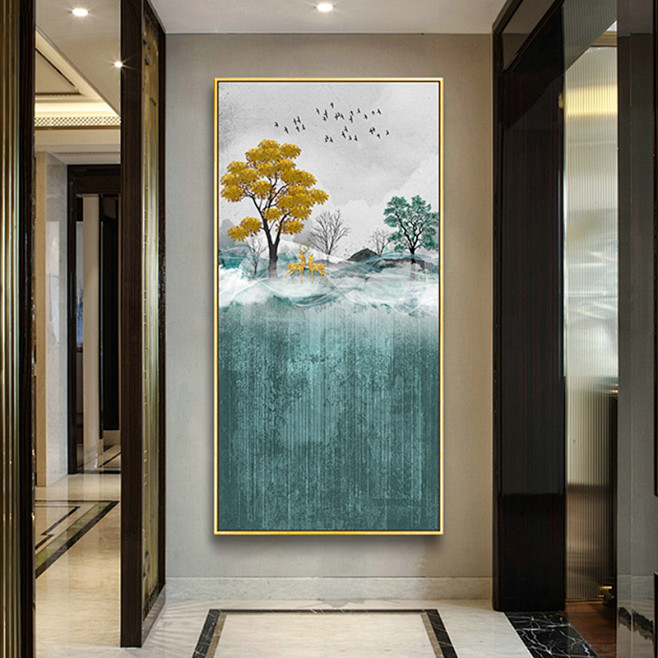 现代晶瓷画轻奢玄关装饰画招财竖版墙面客厅背景墙过道走廊壁挂画