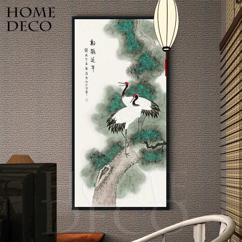 现代中式玄关装饰画餐厅书房挂画客厅墙画过道走廊壁画松鹤延年图兰眉装饰