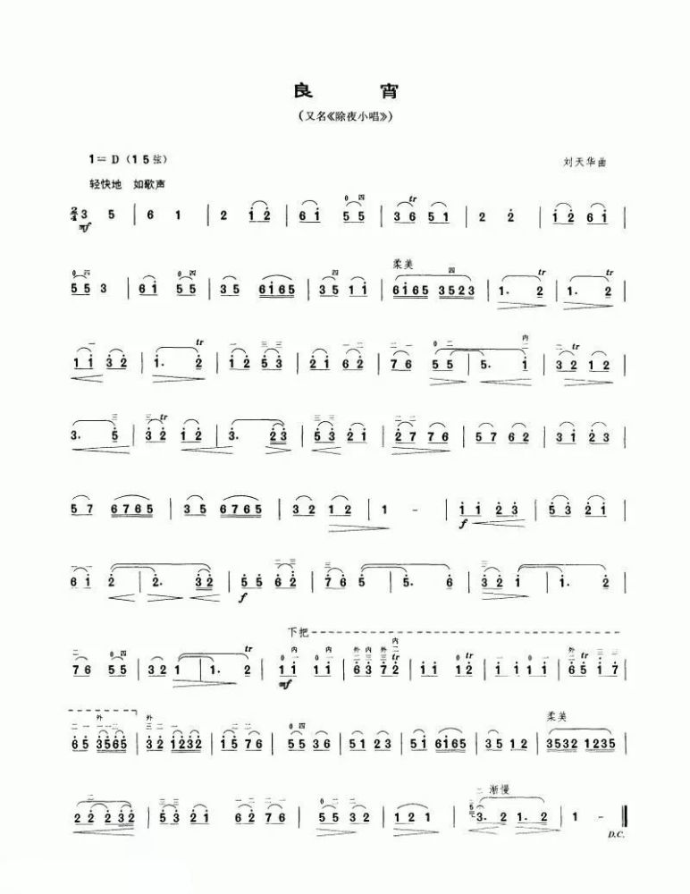 二胡独奏良宵简谱指法