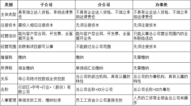 子公司、分公司、办事处,到底应该怎么选?