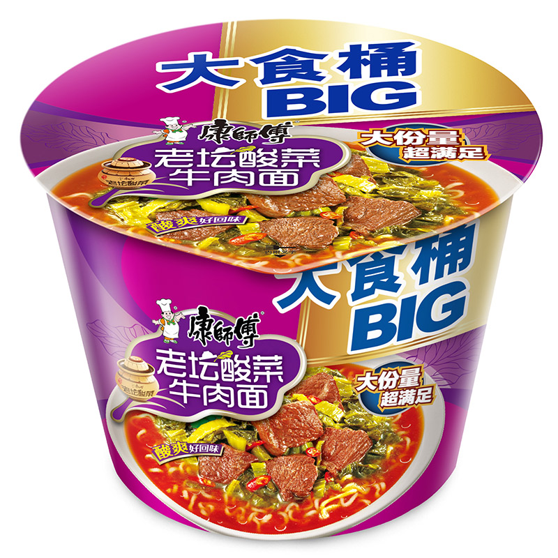 康师傅 大食桶酸菜牛肉面 159g\/桶 方便面泡面