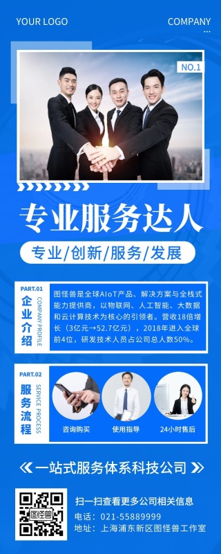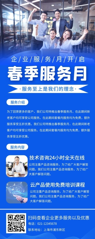 商务蓝色服务达人公司营销长图