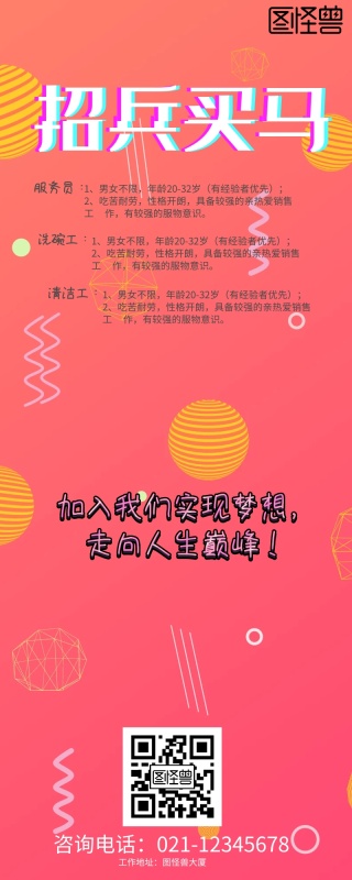 高薪诚聘+服务员+营销长图