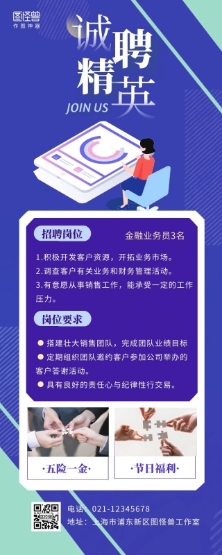 招聘精英金融服务办公营销长图内推