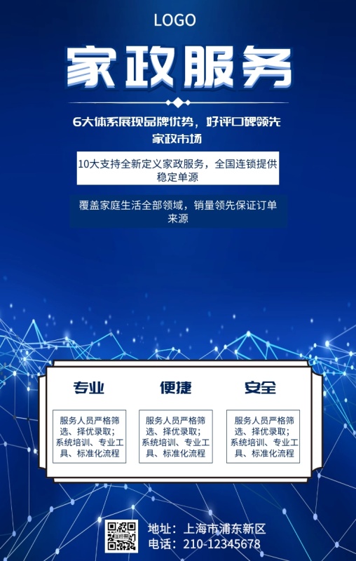 蓝色简约家政公司技术服务手机营销海报