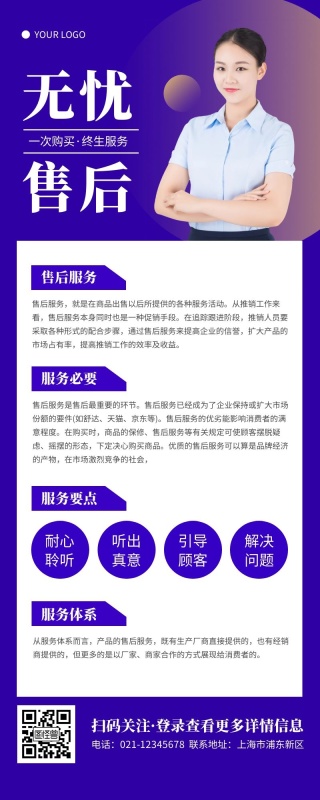 简约蓝色售后服务营销长图