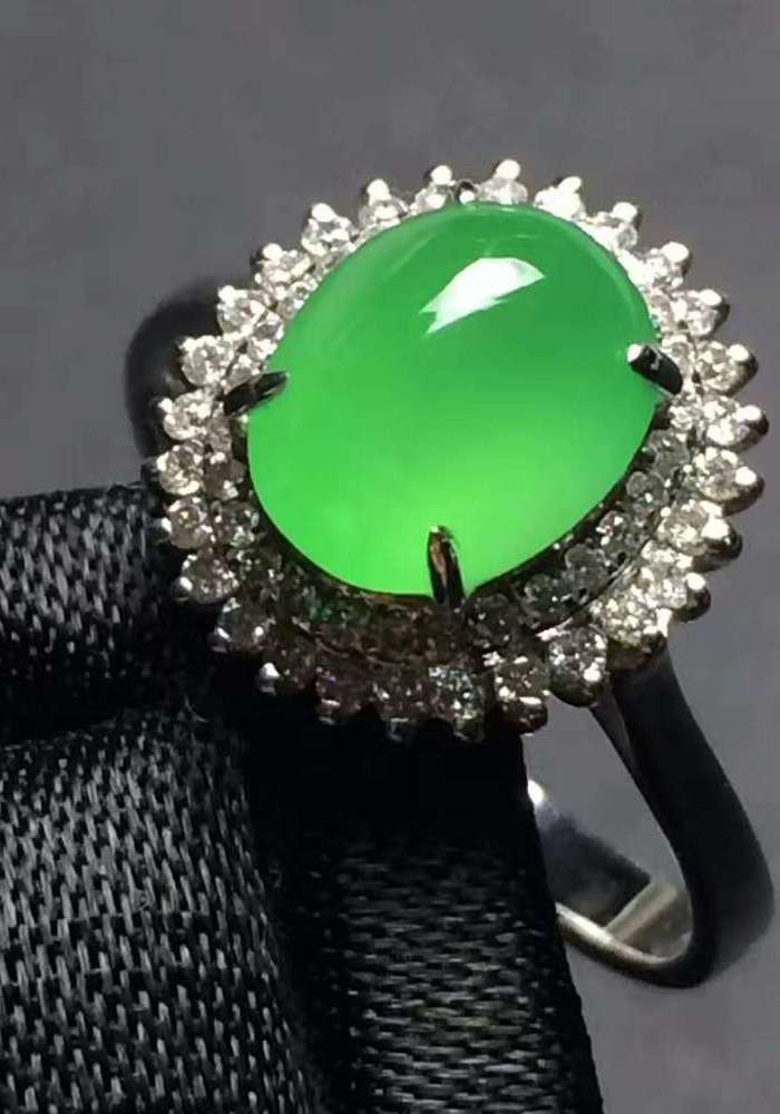 精品天然翡翠翡翠阳绿辣色戒指,冰润色艳,