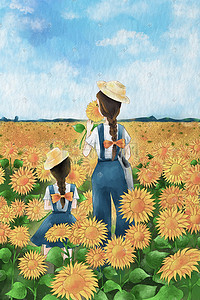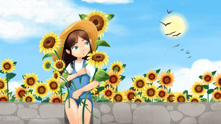 少女之向日葵花海插画-少女之向日葵花海