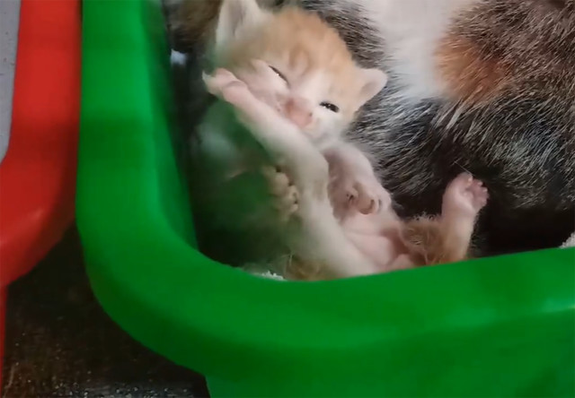 小奶猫不爱吃奶爱吃脚,猫妈看得直翻白眼