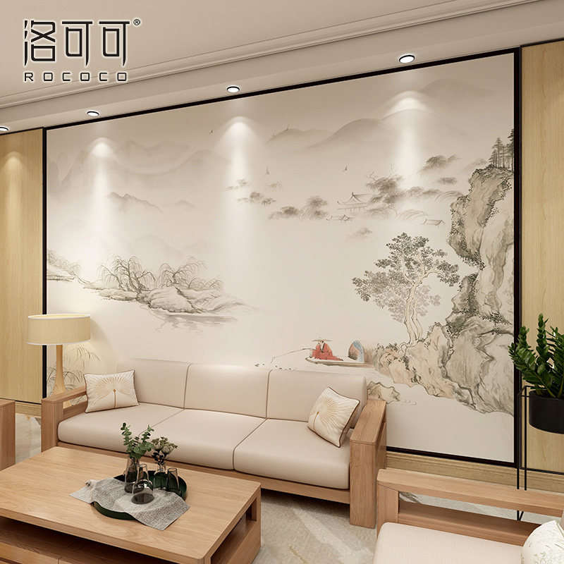 新中式壁纸电视背景墙壁画山水意境客厅背景墙沙发背景墙墙纸壁布