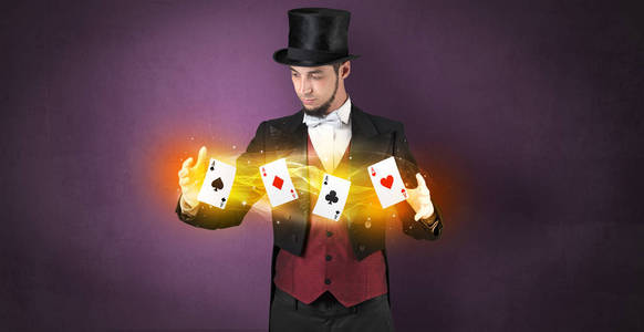 素材丨特写黑色背景前魔术师玩纸牌魔术