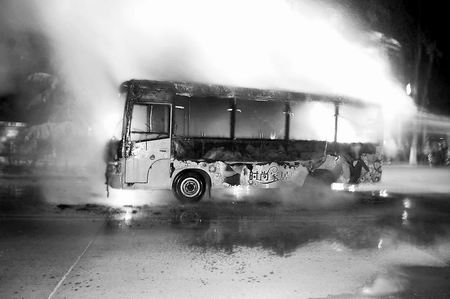 南京一大巴车自燃,消防35分钟扑灭_快快看