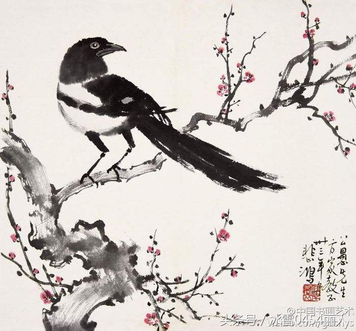 徐悲鸿作品《喜鹊登枝》-宝藏图库