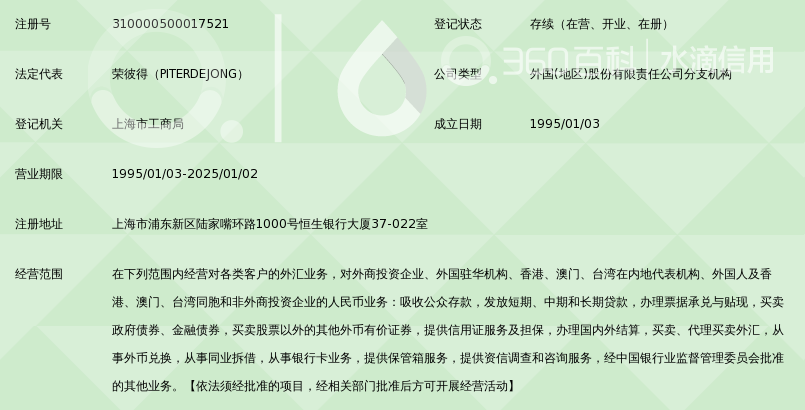 荷兰苏格兰皇家银行有限公司上海分行企业