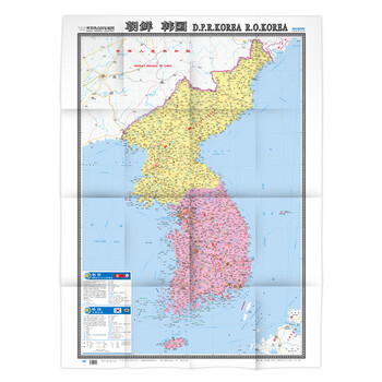 2017朝鲜地图 韩国地图 折叠纸质地图 1.17米*0.9米 热点国家 划区包邮