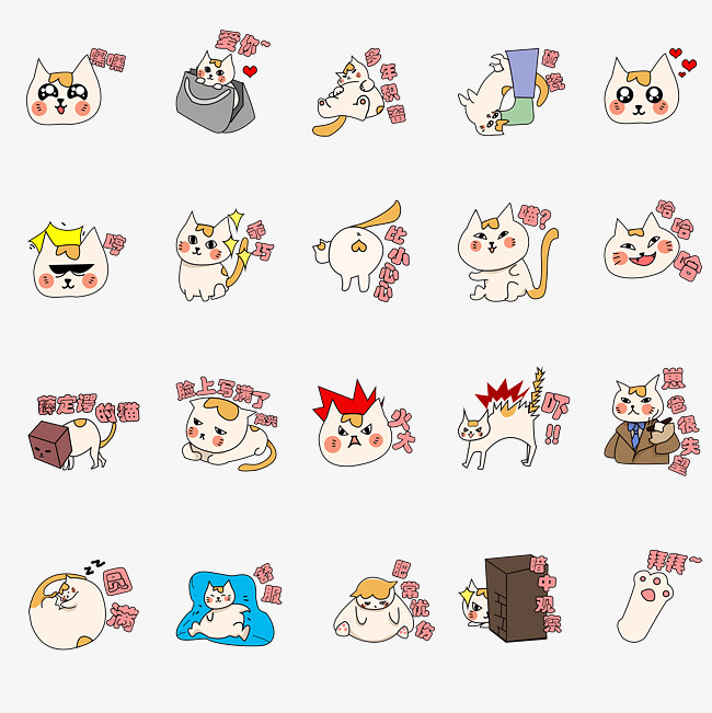 漫画风简笔画手绘卡通贱萌猫咪表情包素材图片免费下载_高清psd_千库网