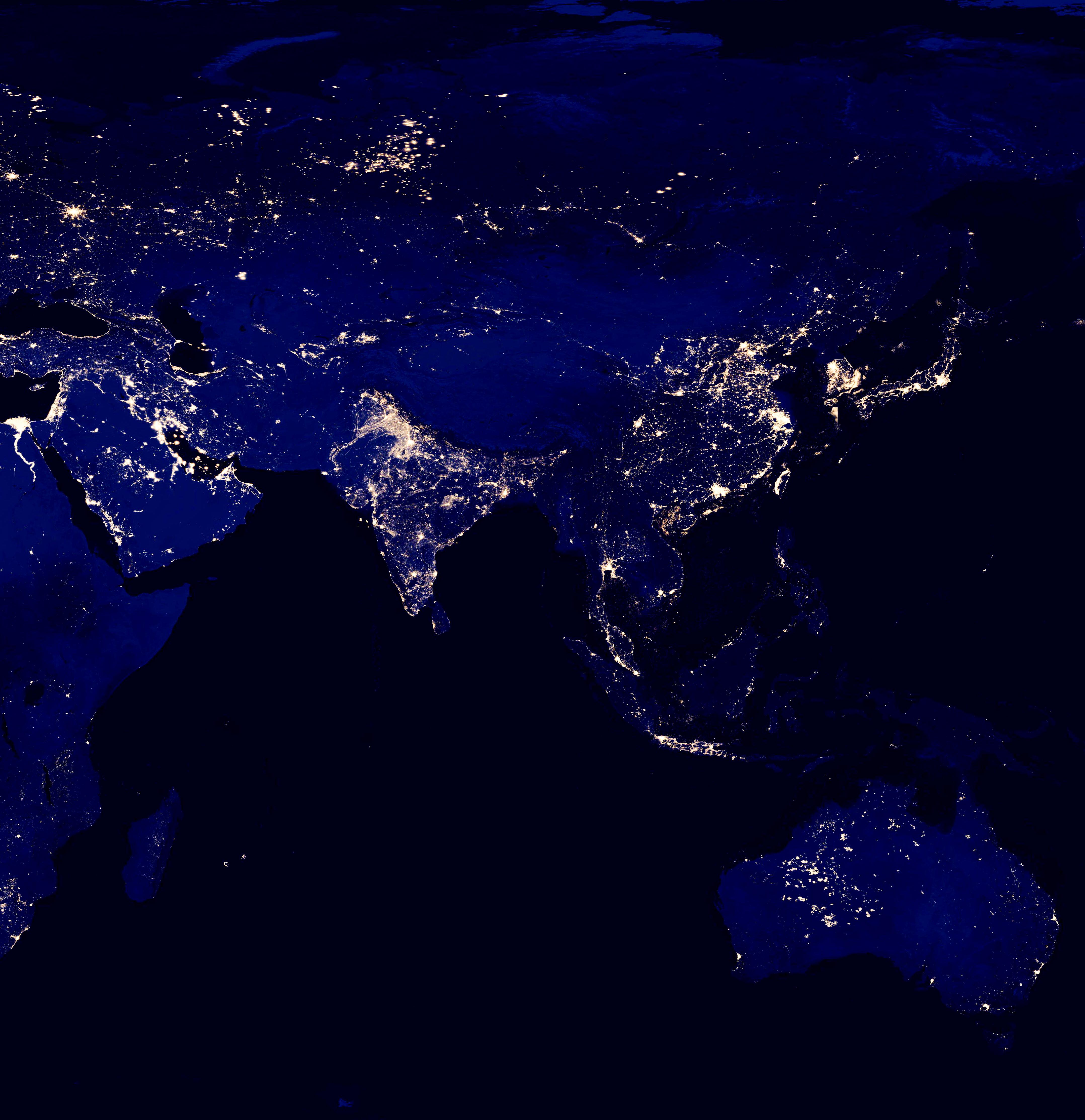 地球夜景卫星图印度比中国亮