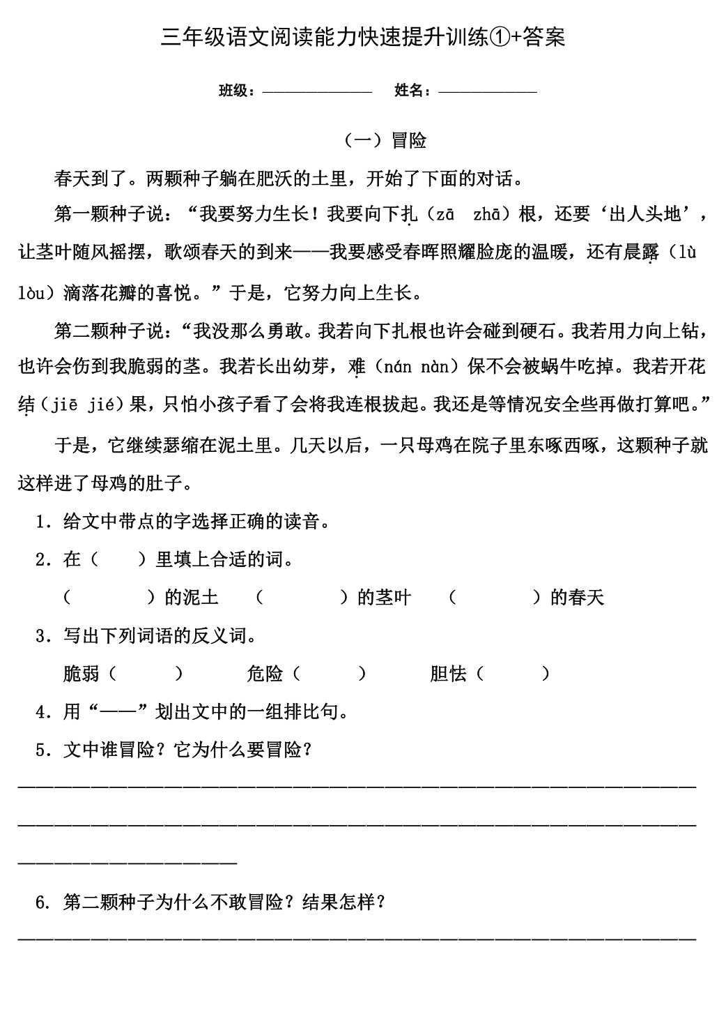 三年级语文下册课外阅读理解练习附答案,吃透掌握,轻松领先