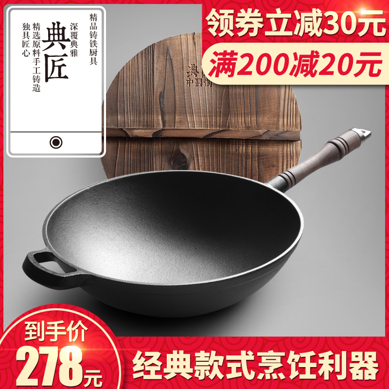 典匠铸铁锅炒锅30cm圆底无涂层不粘锅生