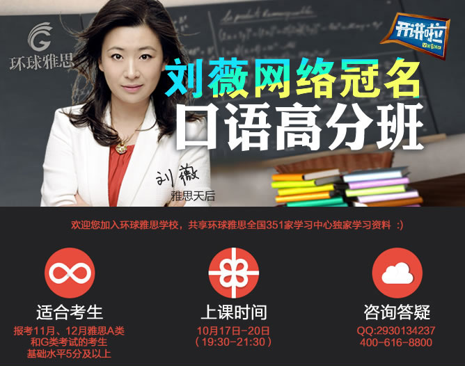 雅思天后刘薇网络冠名口语高分班