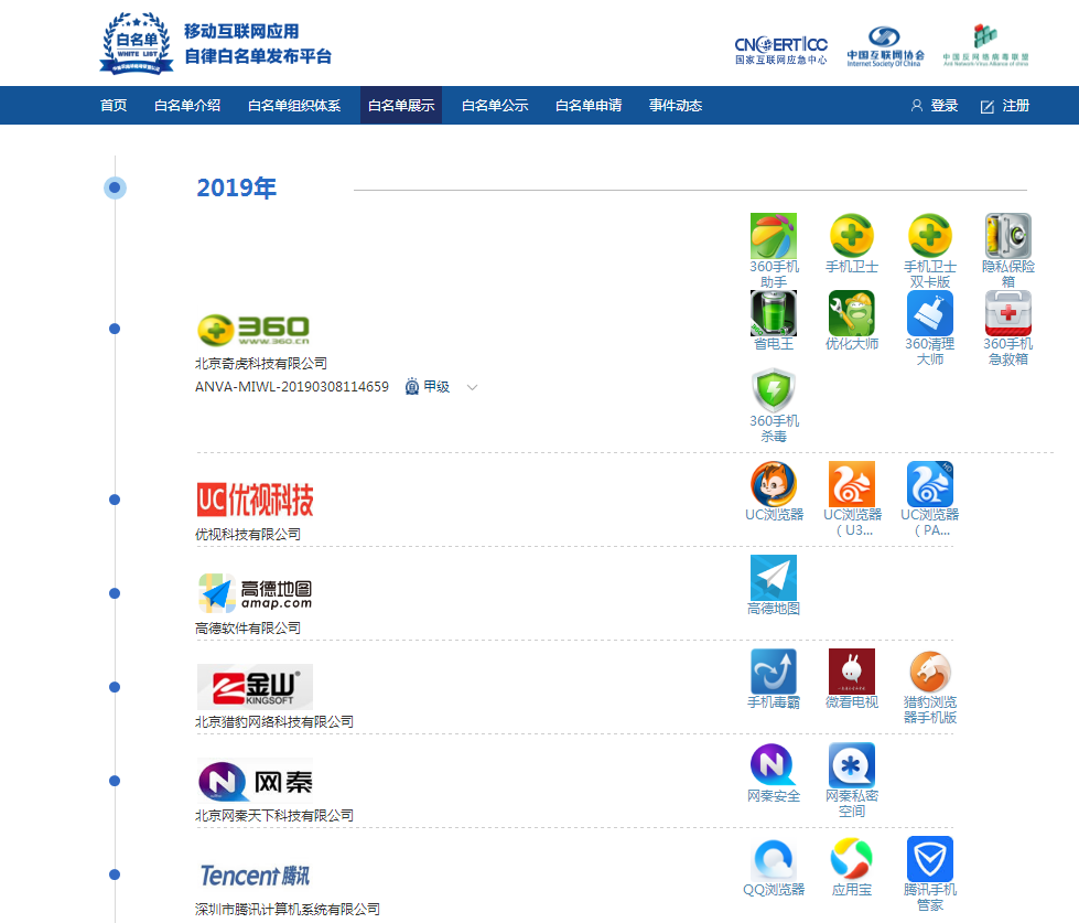 2019移动互联网自律白名单公布:腾讯、360