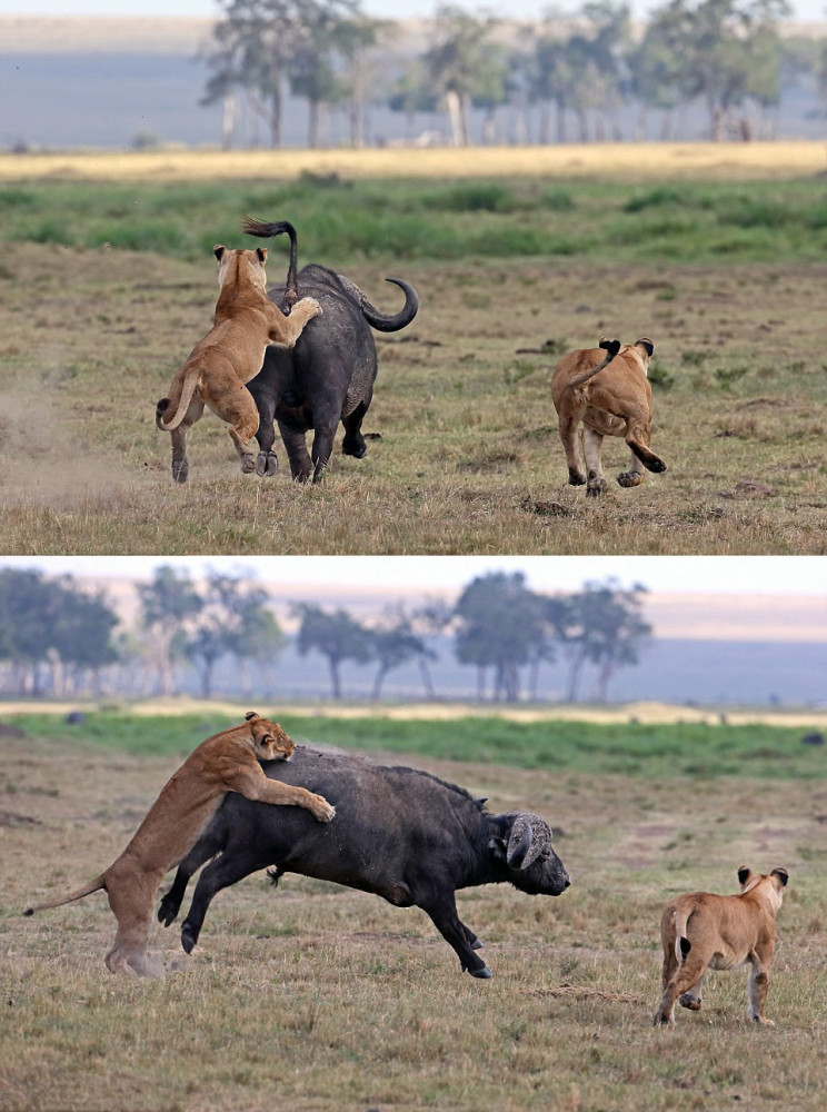 狮子组队捕猎,一头狮子差点命丧当场,落单