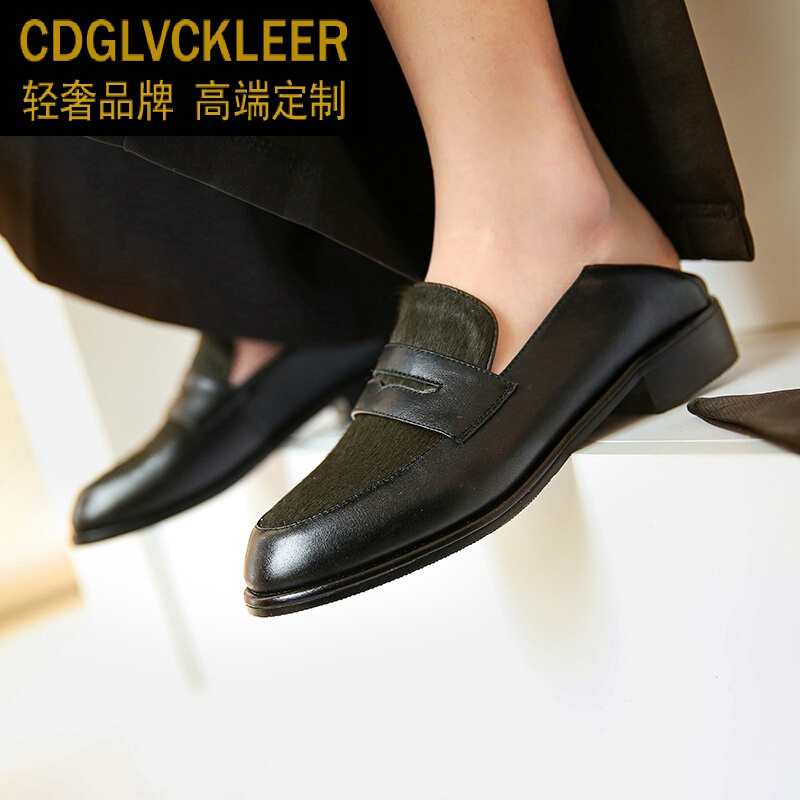 意大利国际奢侈品牌CDGLVCKLEER女鞋乐福鞋女秋款百搭平底软底舒适一脚蹬单鞋深口马毛绿色小皮鞋 视频