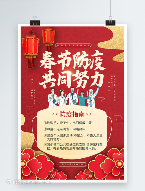 红色春节防疫指南宣传公益海报