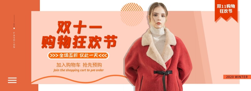 服装女装双十一购物狂欢毛妮大衣全屏海报