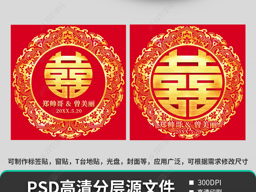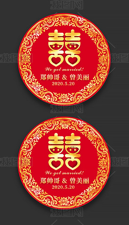 喜庆红色新中式婚礼布置名字挂牌模版图片