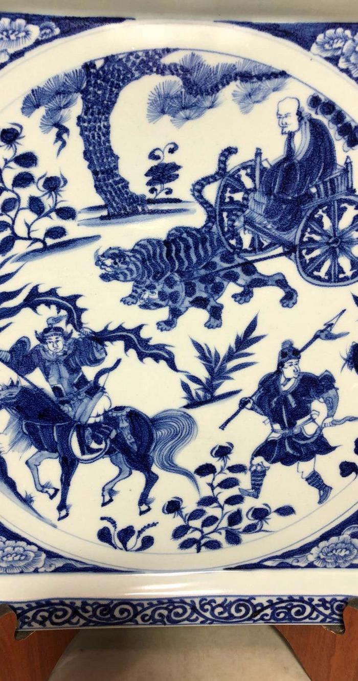 元代青花鬼谷子下山方盘