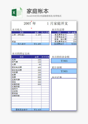 家庭账本模板免费下载_xlsx格式_编号