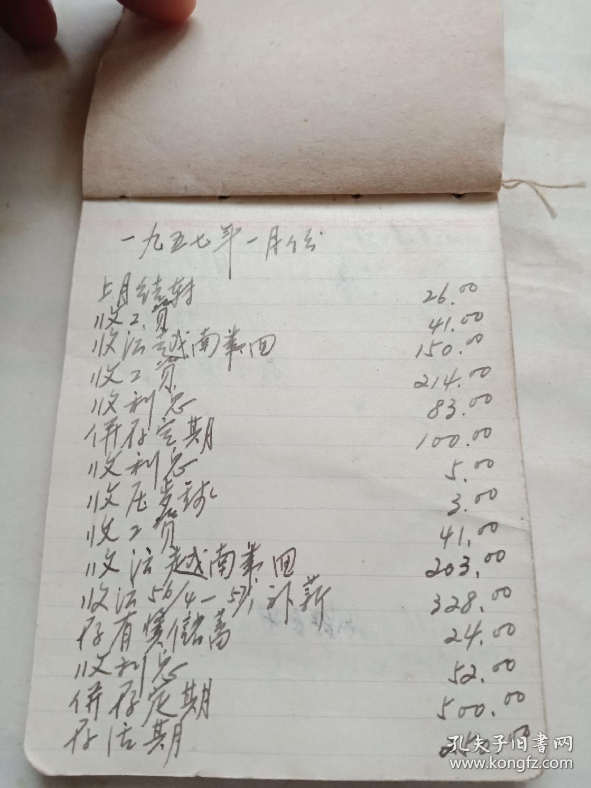 珍贵历史文献,建国初期50\/60年代个人家庭收入账本一个