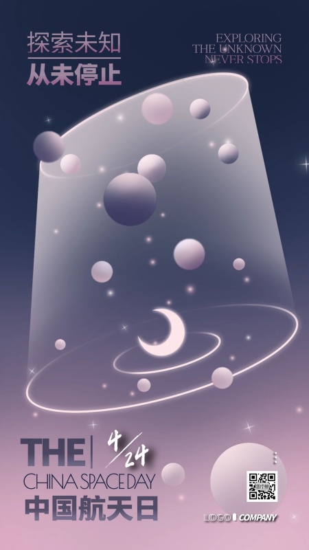 中国航天日4月24日小节日宣传手机海报