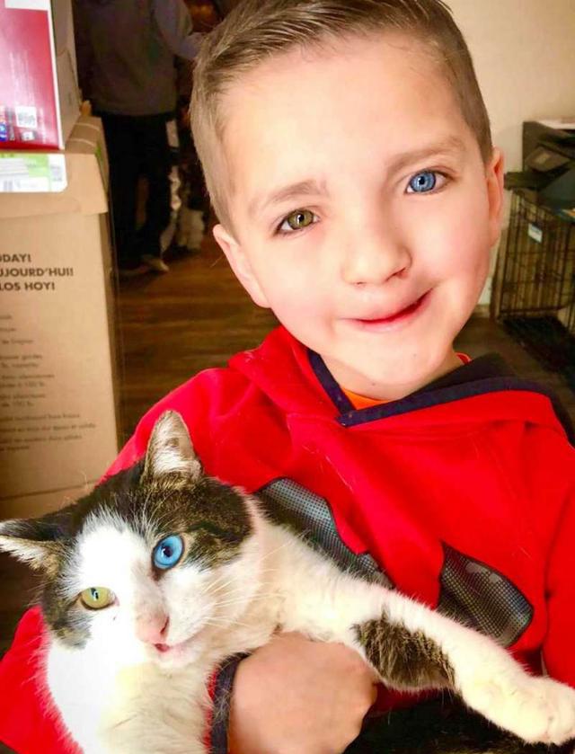 神巧合!小男孩和猫咪同时有虹膜异色症和唇裂症,直接领养回家|唇裂|虹膜
