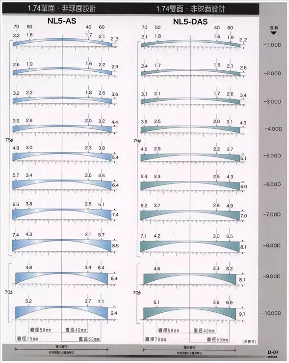 【镜片厚薄】 1.56非球面与1.60非球面-1.00D~-10.00D的厚度会差别多少呢?