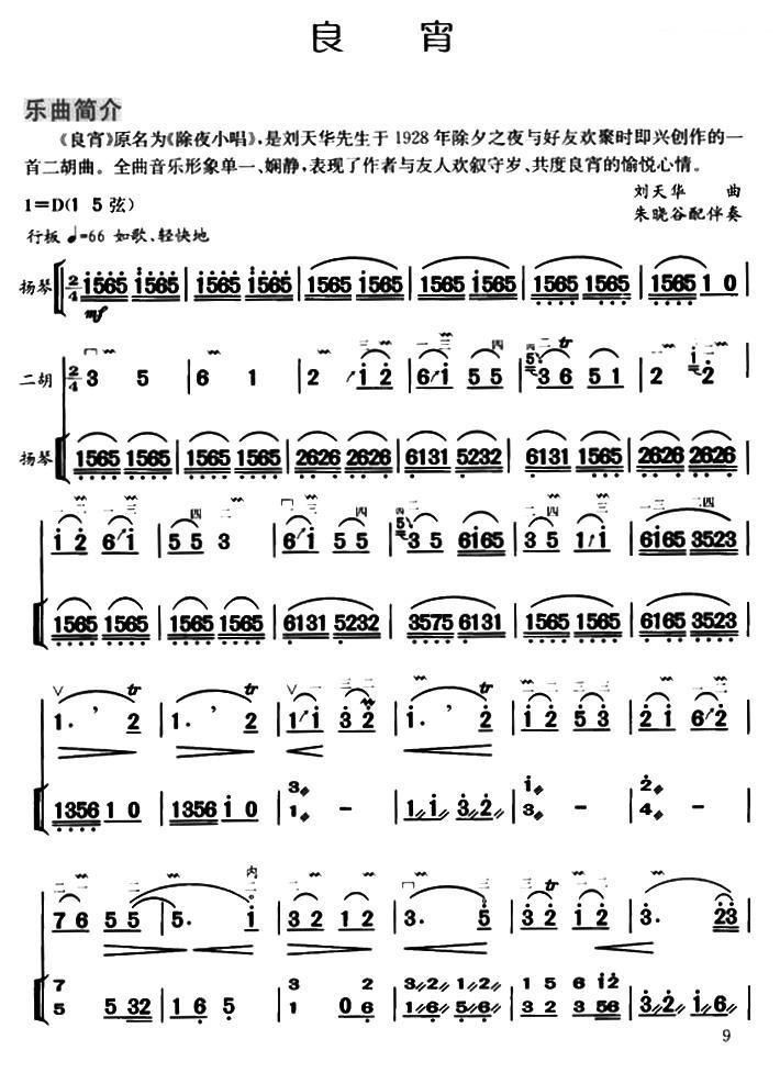良宵(扬琴伴奏)二胡谱