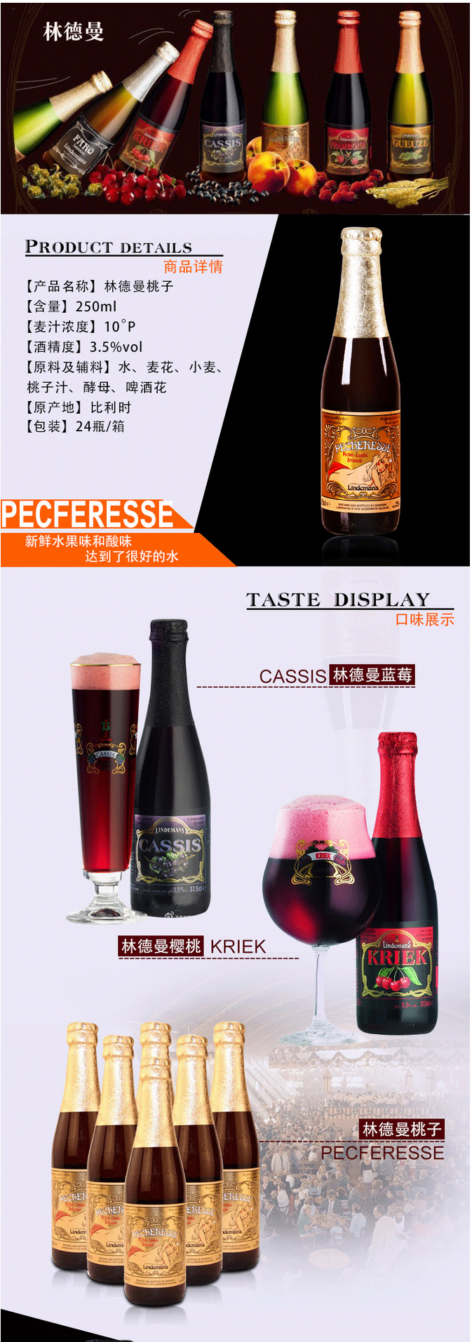 区域包邮比利时林德曼进口啤酒樱桃 桃子