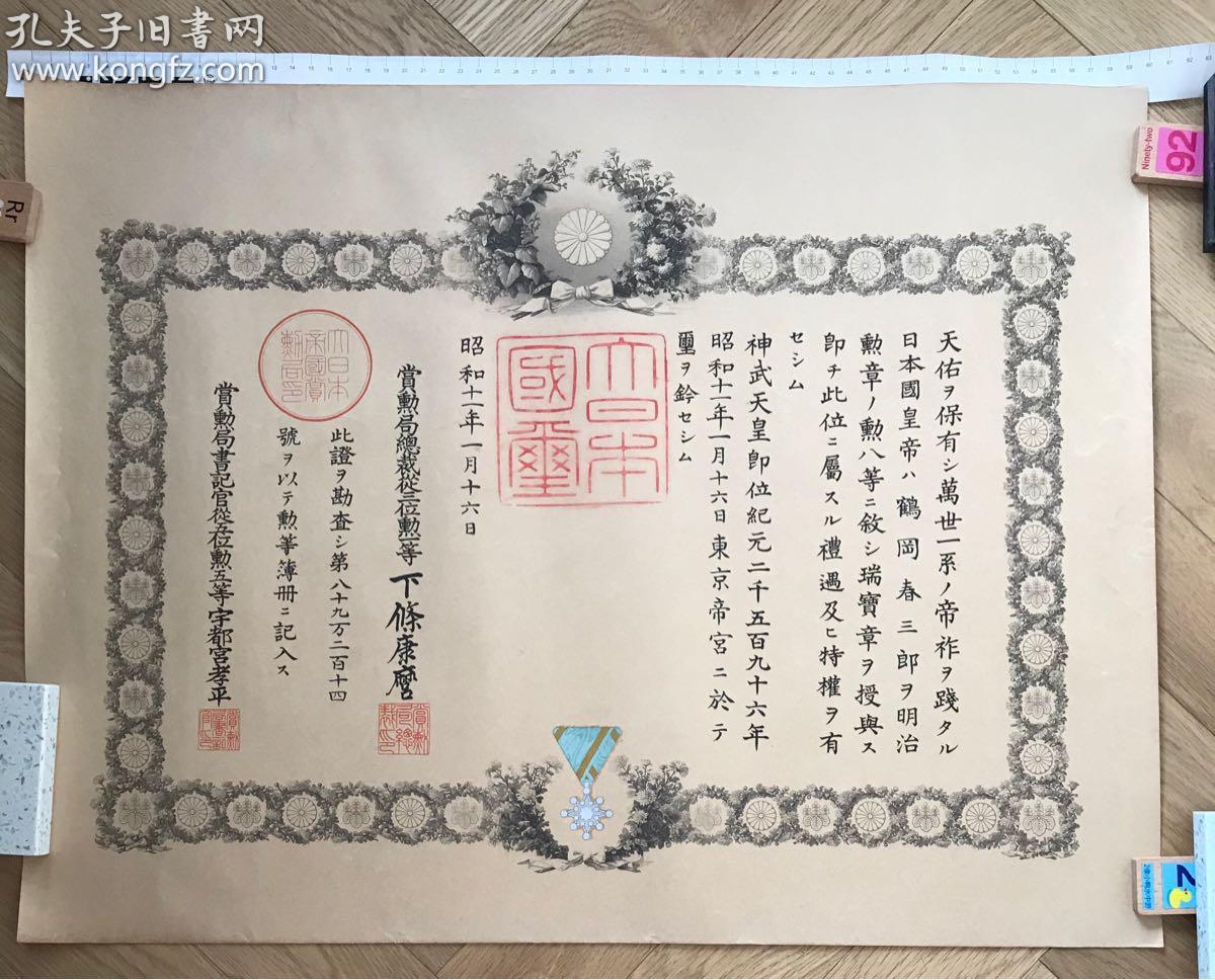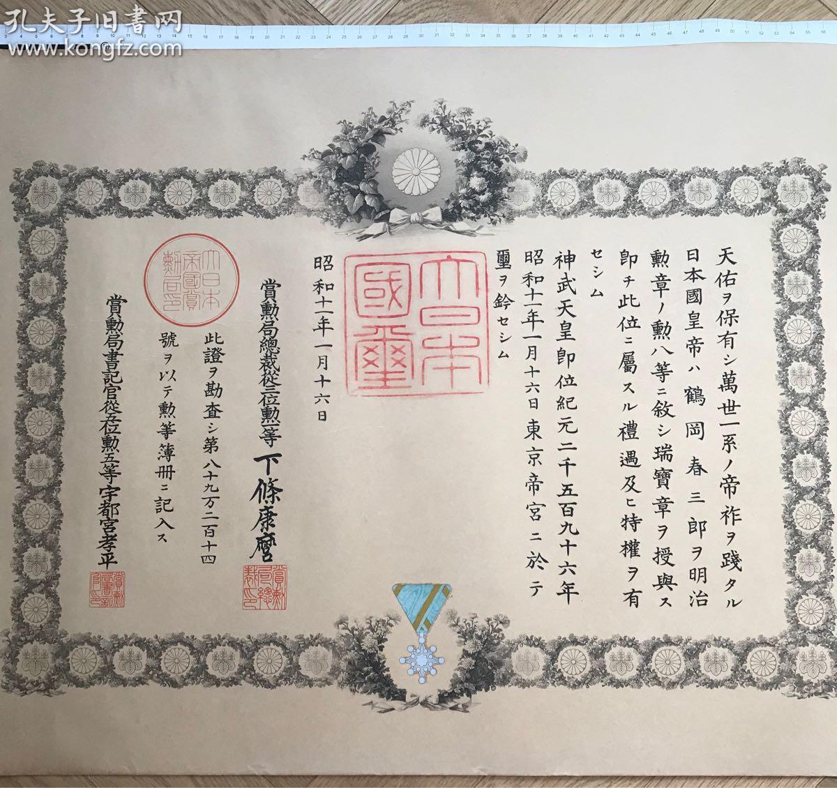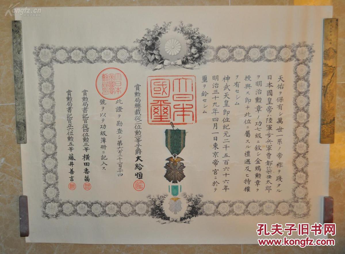 明治(清代)日本国玺 '证书' 配原来勋章' 银章