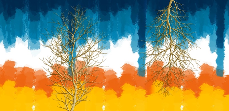图怪兽原创元素现代简约撞色金色的树装饰画