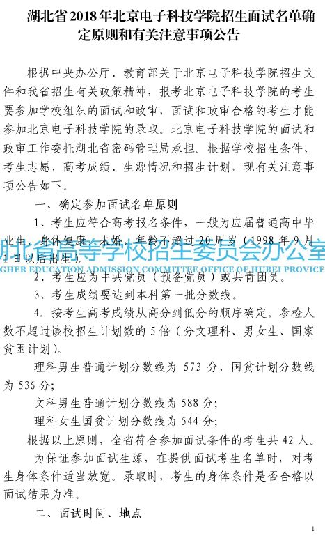 湖北省2018年北京电子科技学院招生面试