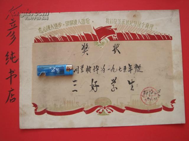 文革植绒奖状 虚心使人进步骄傲使人落后