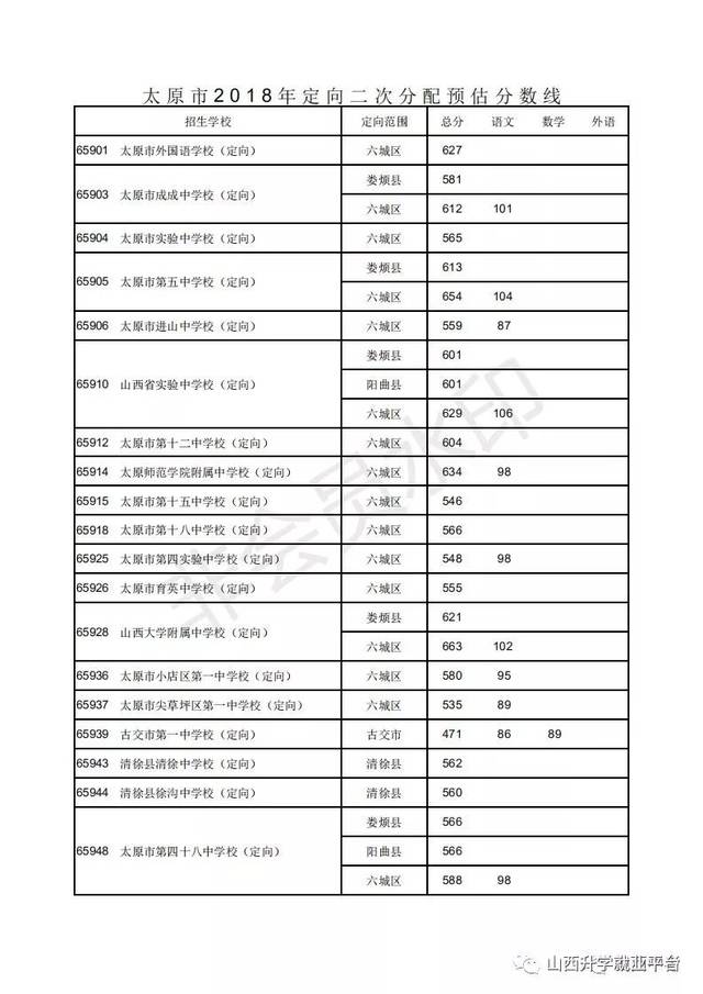 太原中考2018二次定向分数线(正式公布)