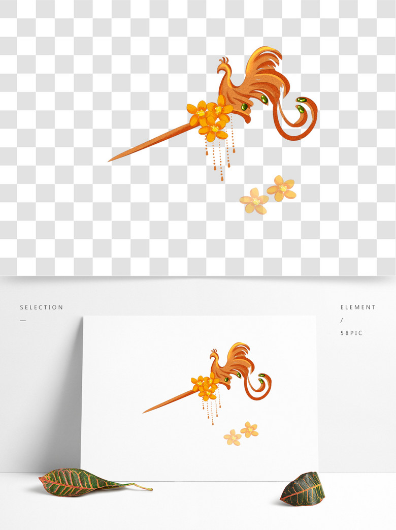 水彩中国风金色凤钗花朵透明底免抠模板免费下载_psd格式_2000像素_编号33776661