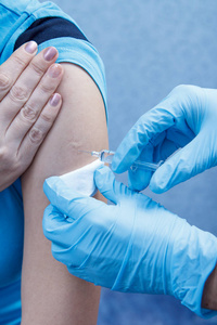 接种.流感疫苗医生向病人的手臂注射流感